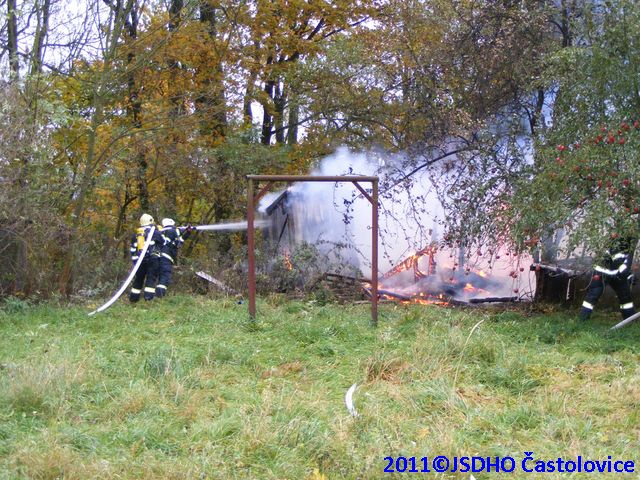 26. 10. 2011, v 9. 14 hod., vyjela jednotka Sboru dobrovolných hasičů obce Častolovice k požáru zahradní chatky v Kostelci nad Orlicí, ulice Komenského. Místo požáru se nacházelo za Výzkumným ústavem živočišné výroby. JSDHO Častolovice prováděla doplňování vody do zasahujích cisteren. Na místě události jednotka spolupracovala s hasiči z Kostelece nad Orlicí a profesinálními hasiči z Rychnova nad Kněžnou.